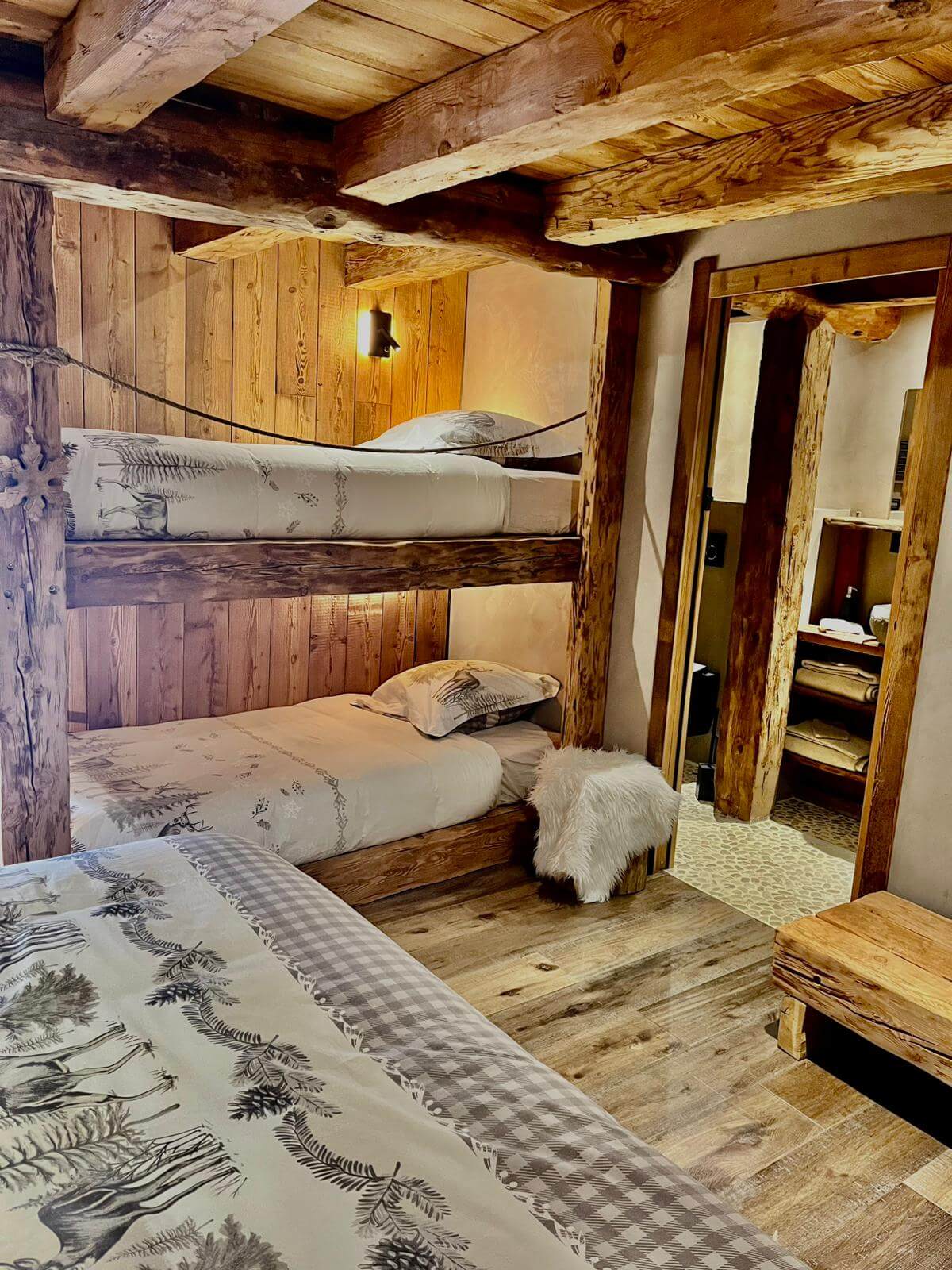 Vous trouverez un lit double en 180×200 et 2 lits simples de 90×200 superposés.
